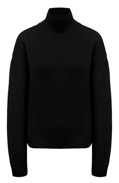 Для создания свитера с высокой горловиной использовали смесовую фактурную пряжу из кашемира и шелка. Лаконичная модель со спущенной линией плеч органично впишется в повседневный гардероб.