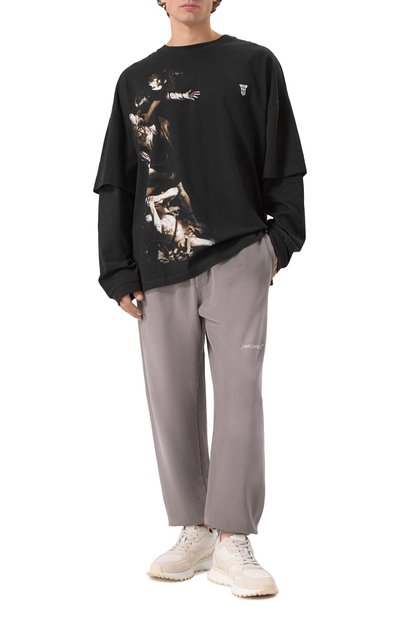 Лонгслив выполнили из хлопкового трикотажа. Модель украсили спереди крупной контрастной надписью Out of stock, а на спине разместили брендированную эмблему. Такое изделие поддержит повседневный образ и с карго, и с джинсами.