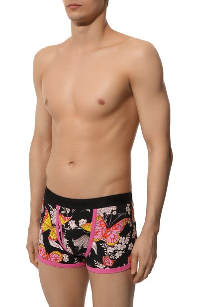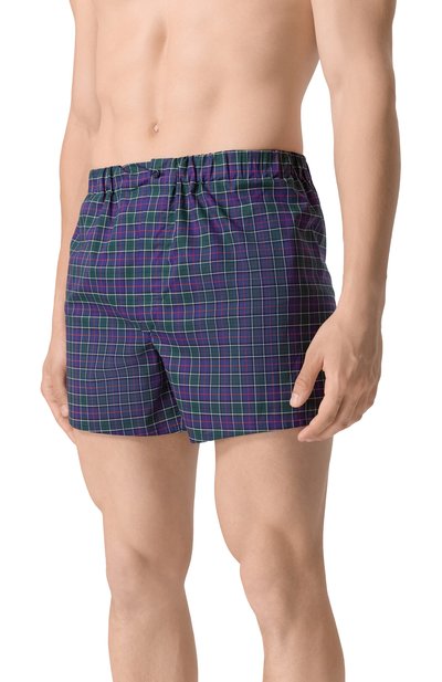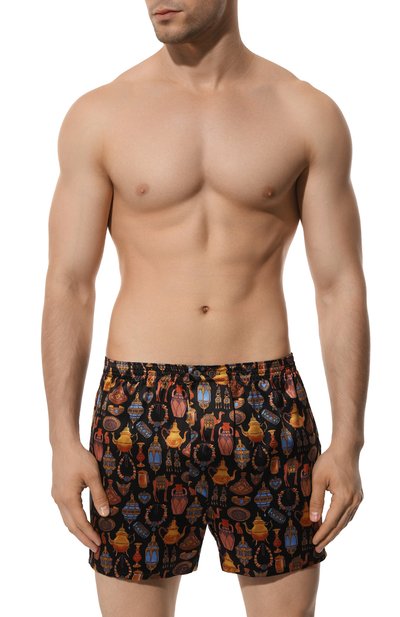 Для пошива боксеров использовали хлопковый материал с разноцветным паттерном, напоминающим лоскутное шитье. Трусы с эластичной вставкой на широком поясе застегиваются пуговицами.