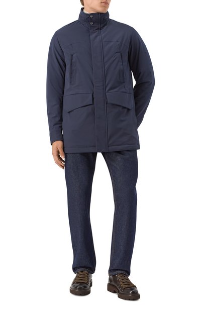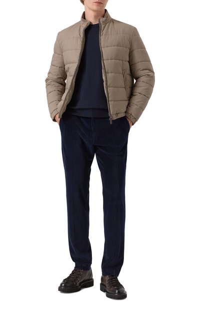 Ботинки с патиной выполнили из зернистой кожи. Такой же материал, но гладкий, использовали для изготовления стеганой вставки. Модель с усиленной шнуровкой дополнили широкой протекторной подошвой и каблуком.