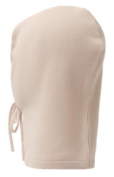 Для изготовления капора с длинной манишкой использовали пряжу из нежной шерсти мериноса. Край выреза дополнили кулиской, регулирующейся длинным шнурком.