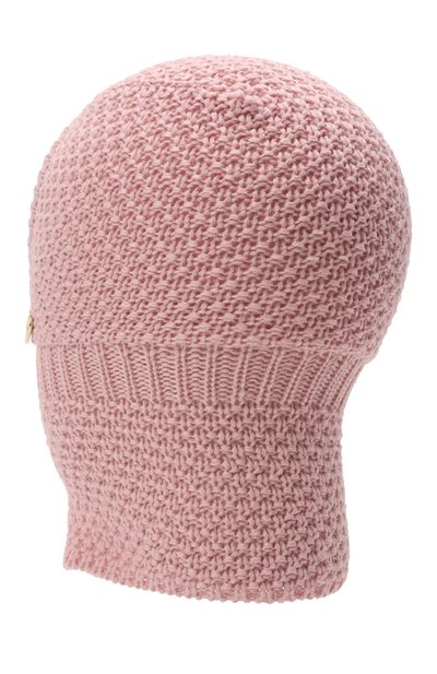 Мастера итальянской марки выполнили облегающую балаклаву из шерстяной пряжи в технике фактурной резинки. На темно-синей модели вывязали широкую красно-серую полоску под подбородком.