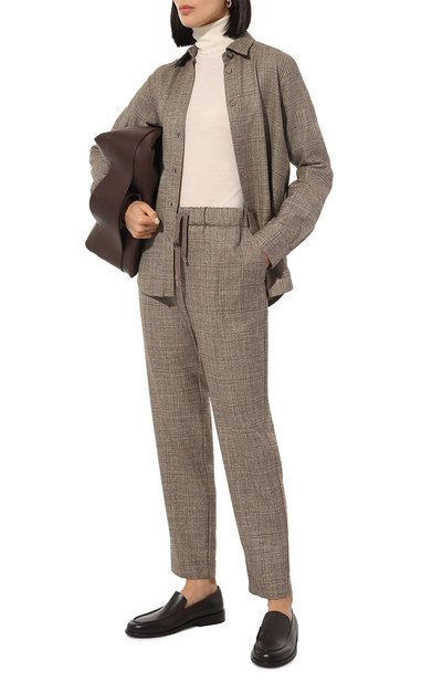 Единственным декором клетчатой рубашки из хлопковой фланели стал логотип марки, вышитый на левом нагрудном кармане. Свободная модель с закругленным низом застегивается кнопками с перламутровыми кабошонами.