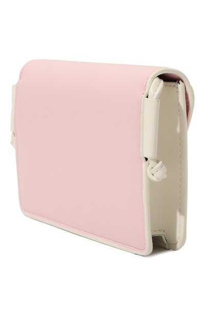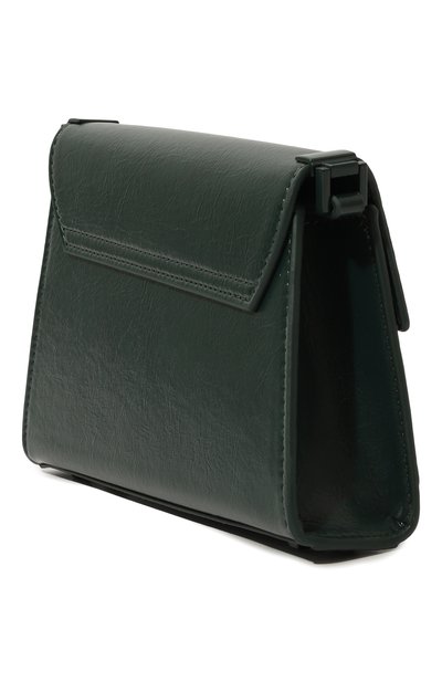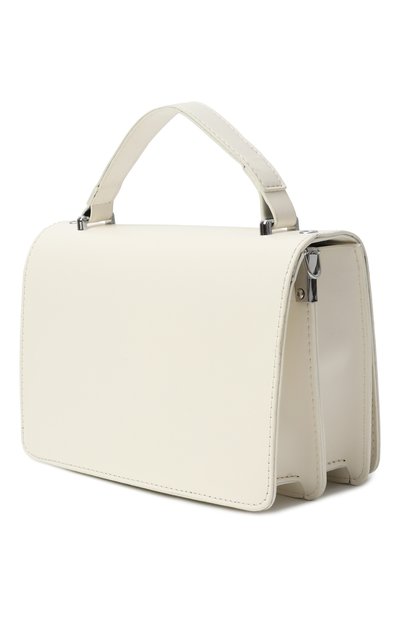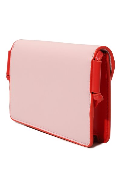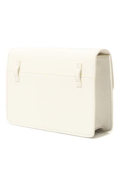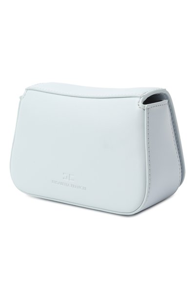 Сумку из искусственной кожи собрали по принципу color block. Аксессуар с узким плечевым ремнем закрывается фигурным клапаном с потайной магнитной кнопкой.
