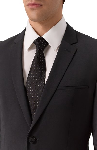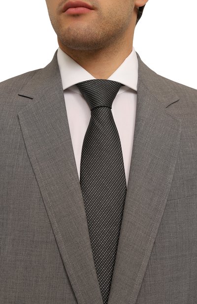 Широкий галстук с жаккардовым микропаттерном выполнили в технике семи сложений из прочного шелка. Такой аксессуар хорошо драпируется, не перекручивается и быстро расправляется после узла.