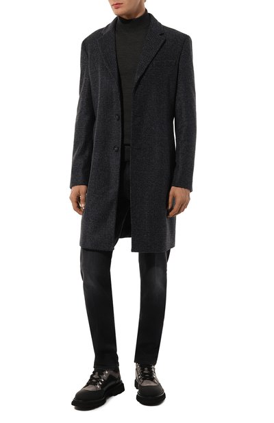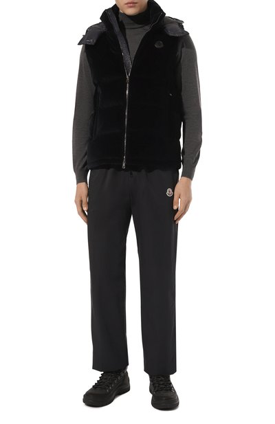 Высокие хайкеры со шнуровкой, продетой в D-образные люверсы и текстильные петли, изготовили из замши. Пару с брендированной нашивкой на язычке, войлочной и кожаной вставками на голенище поставили на широкую подошву с рельефным протектором.