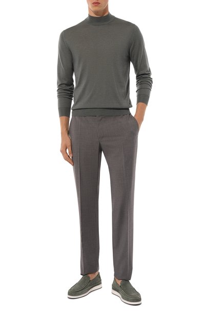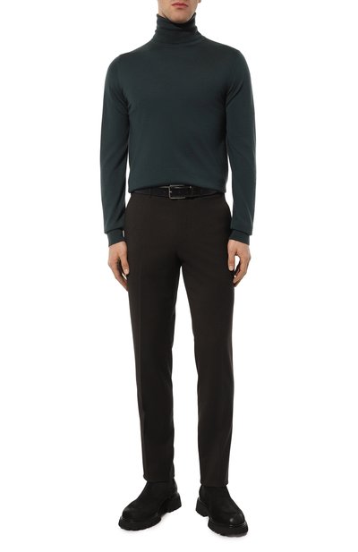 Однотонная водолазка удачно дополнит любой повседневный образ и сможет заменить рубашку в комплекте для офиса с нестрогим дресс-кодом. Для изготовления модели использовали тонкий трикотаж из шерсти ultra-fine первого пострига.