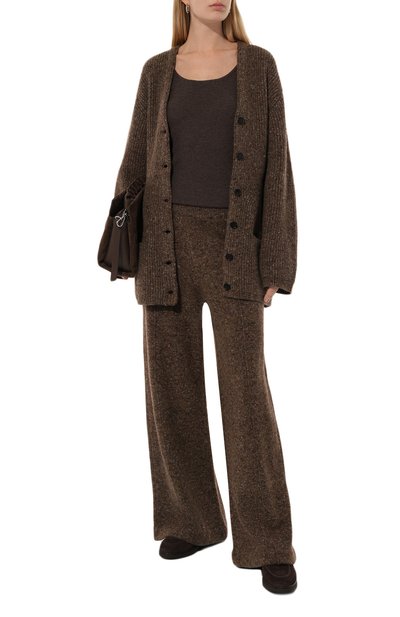 Облегающий топ с вырезом халтер сшили из эластичного шерстяного трикотажа в рубчик. Модель органично впишется в базовый гардероб.