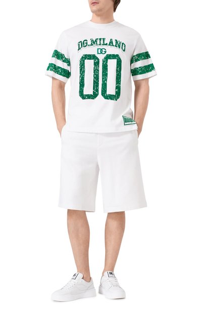 Прямую футболку из хлопкового трикотажа украсили словно потертым принтом, напоминающим мерч рок-группы. Модель с круглой горловиной, дополненной кантом в рубчик, наши стилисты предлагают носить с джинсами, курткой и кедами.