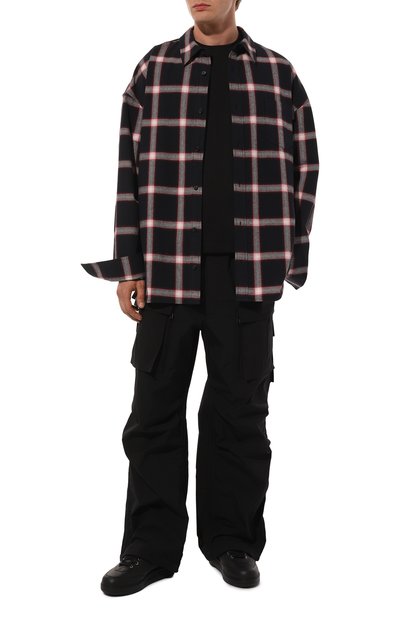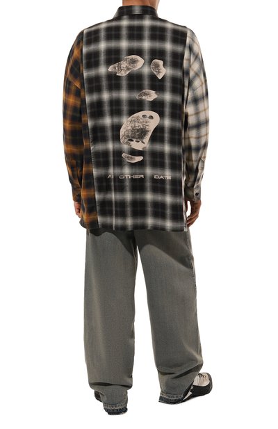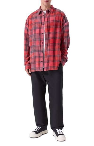 Свободная клетчатая рубашка из плотной хлопковой фланели сможет заменить куртку в прохладную погоду. Модель с фактурными швами вдоль кокетки и прорезными карманами по бокам декорировали спереди миниатюрным вышитым логотипом.