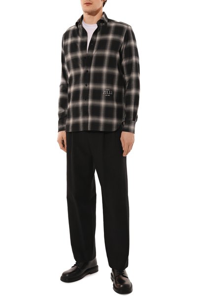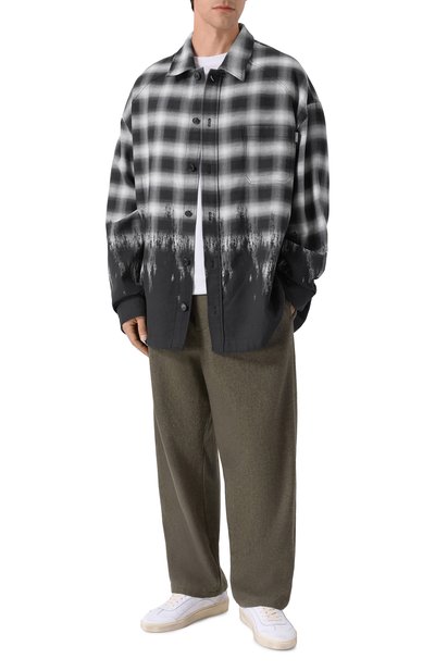 Клетчатая рубашка со спущенной линией плеч и накладным карманом сшита из плотного хлопка. Модель свободного кроя, будто покрыта внизу краской, создающей градиентный эффект.