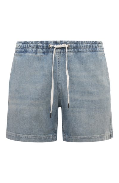 Джинсовые шорты с боковыми и задними прорезными карманами дополнили эластичным регулируемым поясом-кулиской. Модель из денима постирали, чтобы выбелить и сформировать потертости. Сбоку — вышитая эмблема.