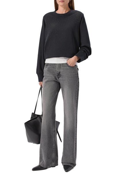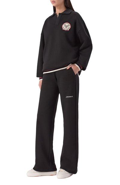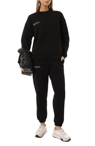 Свободный свитшот со спущенной линией плеч украсили спереди вышитым в тон логотипом марки. Модель из органического хлопка наши стилисты предлагают носить с парными джоггерами, майкой и кедами.