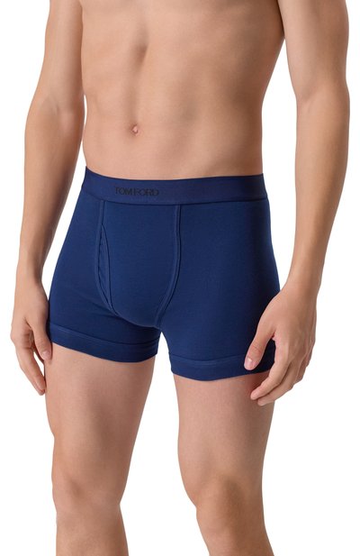 Для изготовления боксеров облегающего кроя использовали хлопковый трикотаж стрейч. Трусы дополнили широким поясом с контрастным логотипом бренда.