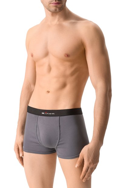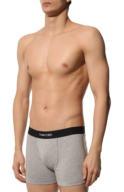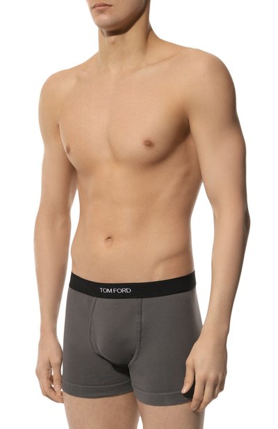 Для изготовления боксеров облегающего кроя использовали хлопковый трикотаж стрейч. Трусы дополнили широким поясом с контрастным логотипом бренда.