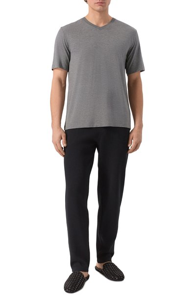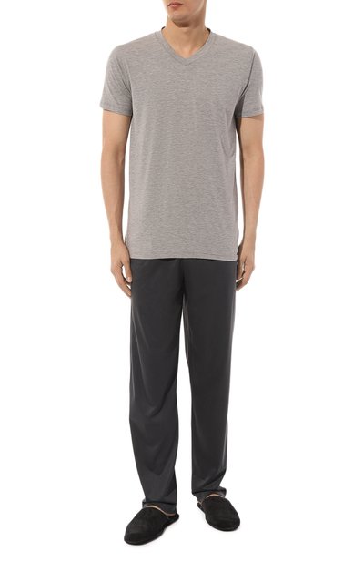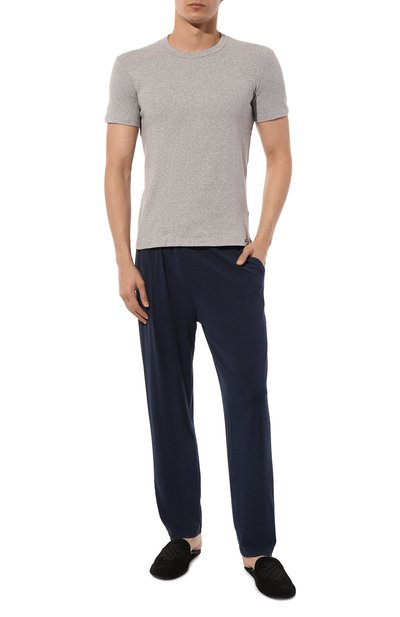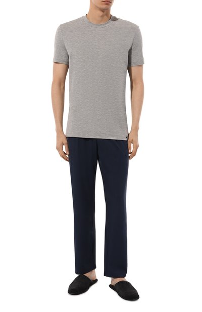 Базовую футболку с круглым вырезом сшили из тонкого хлопкового трикотажа, не сковывающего движения. Меланжевую модель прямого кроя украсили миниатюрной нашивкой с логотипом марки снизу.