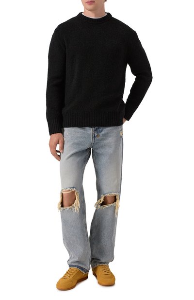 Джинсы Riot с регулируемыми кулисками внизу брючин помимо задних и боковых карманов дополнили тремя крупными карго. Сзади изделие украсили нашивкой и фирменным мотивом 4x4, а спереди – логотипом Ksubi 1999. Для пошива использовали хлопок средней плотности с эффектом состаренности.