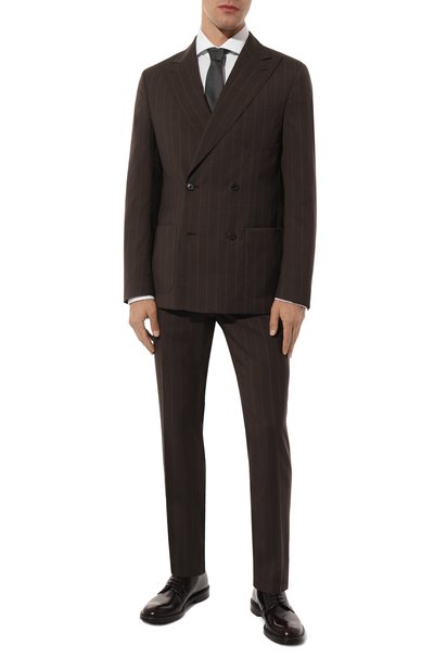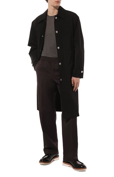 Дерби Sharkino из гладкой телячьей кожи окрасили и отполировали вручную, создав на поверхности едва заметную патину. Пару поставили на широкую протекторную подошву с логотипом на заднике и рантом, выделенным ярким цветом.