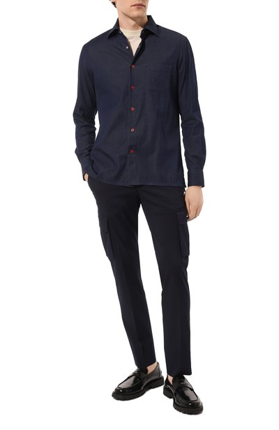 Эластичная сорочка прямого кроя сшита из гладкого хлопкового поплина, который почти не мнется и легко поддается глажке. Модель застегивается контрастными пуговицами.