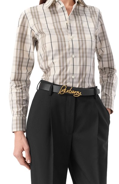 Ремень с рельефной пряжкой в виде литеры K поддержит повседневные образы с джинсами или более строгими брюками. Для создания аксессуара с одной шлевкой использовали матовую зернистую кожу.