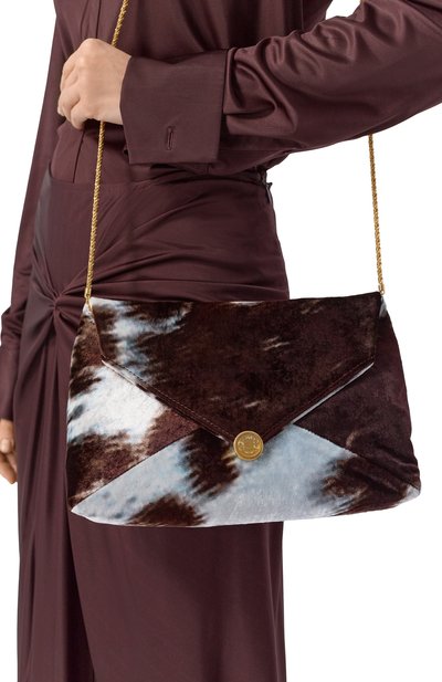 Сумку изготовили из канваса с ярким принт Majolica. Отделку из кожи зарифмовали с плечевым ремнем, завершив декор модели брендированной пластиной. В аксессуар с внутренним карманом поместятся смартфон, кошелек и ключи.