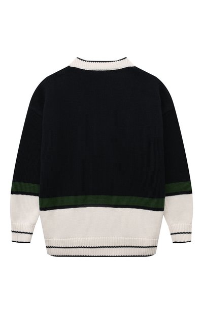 Кардиган с круглой горловиной выполнили гладкой и фактурной вязкой из мериносовой шерсти. Изделие, застегивающееся пуговицами в тон, украсили спереди крупной вышивкой в виде цветов.
