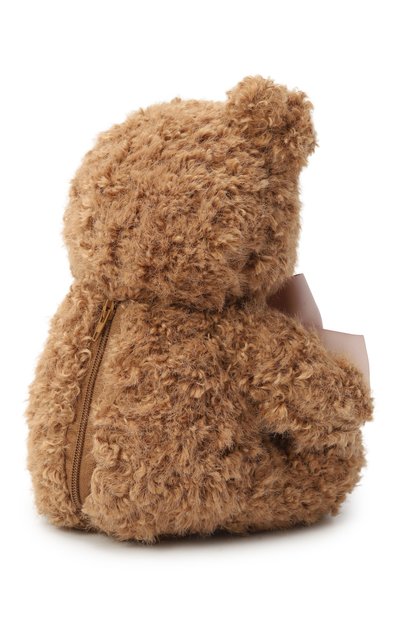Сумку в форме медвежонка изготовили из легкого текстиля. Максимального сходства с плюшевой игрушкой добились аппликациями из фактурной ткани. Аксессуар с широким плечевым ремнем застегивается молнией.
