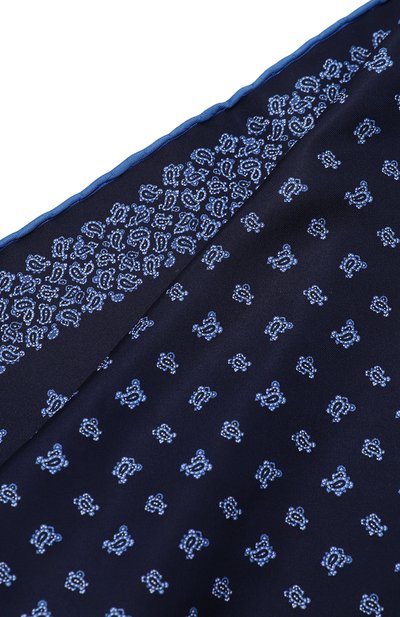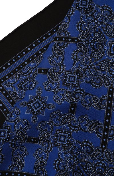 Квадратный платок изготовили из шелка с графичным паттерном, в который вписали монограмму DG. Края аксессуара с широкой однотонной каймой подшили вручную, поэтому он не деформируется со временем.