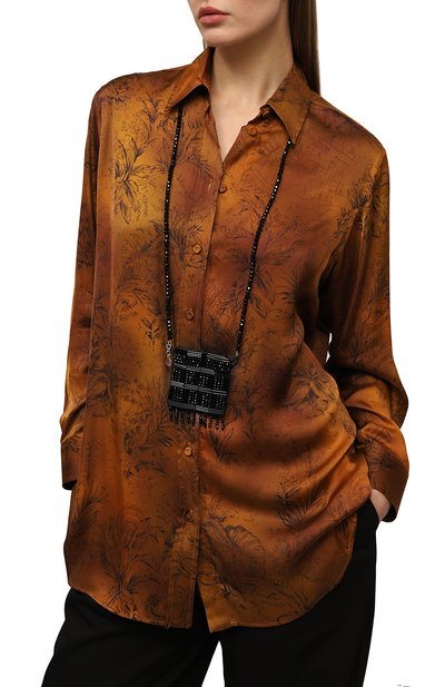 Колье-шнур изготовлено вручную из лакированной кожи с глянцевым блеском. Украшение дополнено объемным цветком с легким алюминиевым каркасом. На один из лепестков нанесен логотип марки.