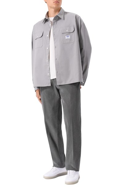 Вельветовые брюки с пятью карманами, как у джинсов, один из которых украсили фирменным гербом, сшили из фактурного хлопка с добавлением лиоцелла. Зауженную модель предлагаем носить с рубашкой, кардиганом и замшевыми ботинками.