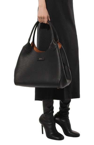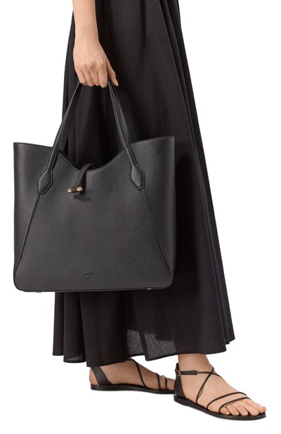 Прямоугольная сумка Akelei выполнена из матовой гладкой кожи. Логотип на передней панели поддержали патчем с эмблемой. Аксессуар с внутренним карманом, застегивающимся молнией, как и сама модель, дополнили двумя длинными ручками.