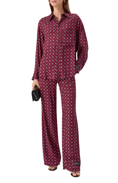 Рубашку с длинными рукавами и отложным воротником сшили из вискозного твила с принтом Swan Lake, дополненным мотивом Institutional Logo. Модель с супатной застежкой станет акцентной деталью образа с однотонными брюками.
