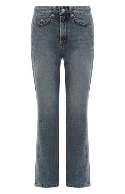 Прямые джинсы со смещенными вперед боковыми швами изготовлены из выбеленного хлопкового денима. Модель со средней посадкой дополнена пятью карманами и фирменным патчем на поясе.