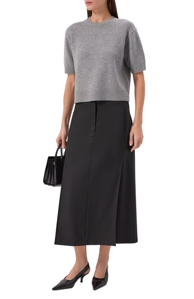 Миди-юбку с гофрированной отделкой и плиссировкой, сшили из легкого креп. Модель завязывается узким поясом-лентой, длины которого хватит, чтобы дважды обернуть вокруг талии.