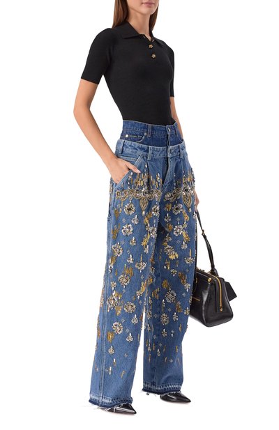Поло с рельефным полосатым узором одинаково хорошо дополнит и комплект для офиса с нестрогим дресс-кодом, и образ для городских улиц. Для изготовления облегающей модели с короткими рукавами использовали вискозный трикотаж с добавлением нейлона.