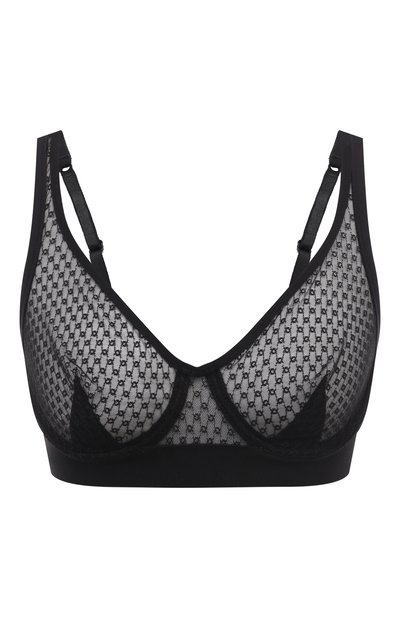 Для пошива бюстгальтера с мягкими треугольными чашечками использовали эластичный полупрозрачный тюль, расшитый геометрическим орнаментом. Модель надежно поддерживает грудь благодаря регулируемым бретелям и широкому поясу.
