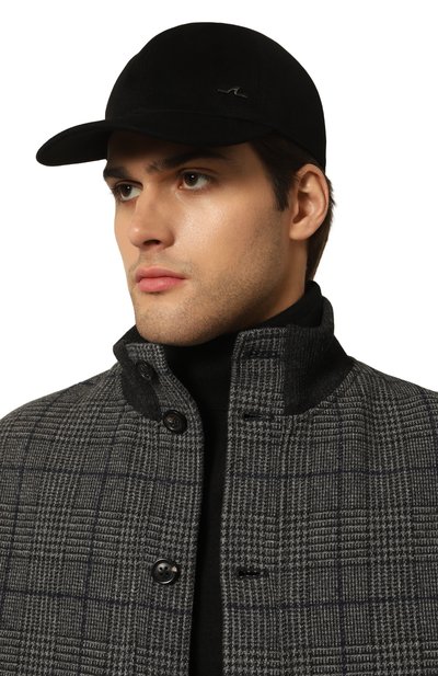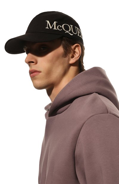 Бейсболку из непромокаемого текстиля украсили эмблемой в виде акульего плавника сбоку. Аксессуар с широким изогнутым козырьком дополнили эластичным ремешком сзади, регулирующим посадку изделия.