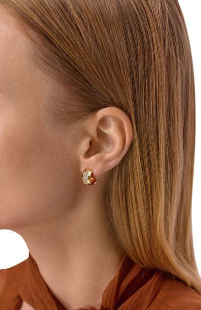 Серьги изготовили из серебра 925-й пробы с гальваническим покрытием золотом. Пусеты в форме несомкнутого кольца с каплевидной центральной частью инкрустировали кубическим цирконием.