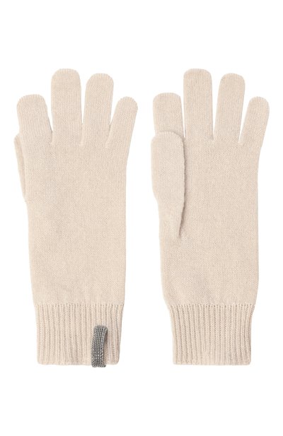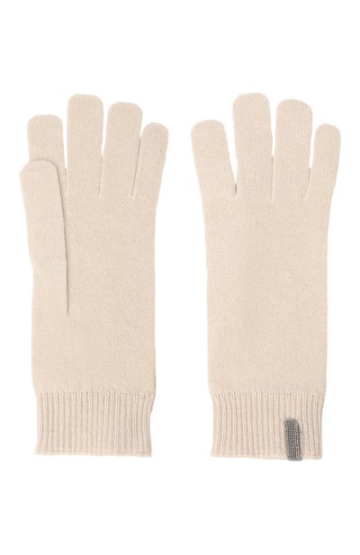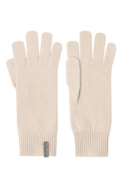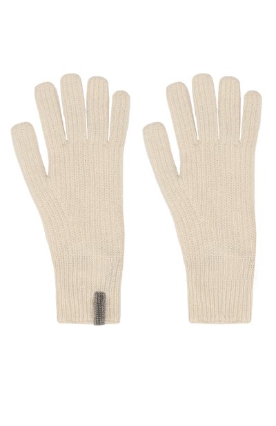 Перчатки фактурной вязки выполнили из неокрашенной кашемировой пряжи. Аксессуар дополнили широкой манжетой, декорированной ярлыком с цепочкой мониль, знаковой для марки.