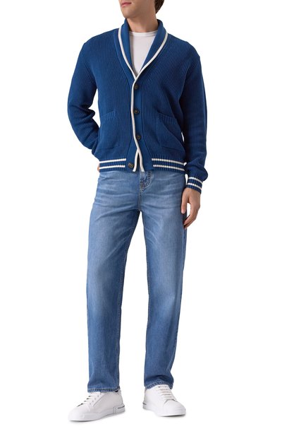 Выбеленные джинсы с брендированной фурнитурой украсили патчем с тисненым логотипом на поясе сзади. Брюки с пятью карманами сшили из эластичного денима.