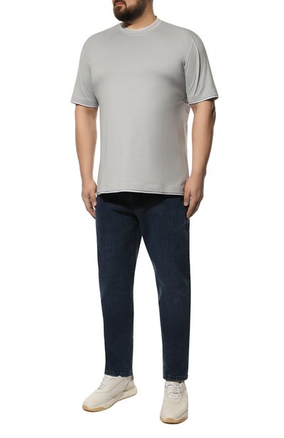 Прямые джинсы со слегка заниженной шаговой линией выполнили из хлопка с добавлением эластана. Изделие с декоративными заломами дополнили пятью карманами и брендированными заклепками. На поясе сзади — патч с тисненым логотипом марки.