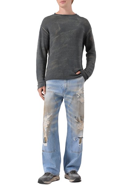 Для изготовления джемпера с фирменным узором зигзаг использовали полушерстяную пряжу. Модель с серым узким кантом на горловине, манжетах и поясе одинаково хорошо сочетается и с классическими брюками, и с джинсами.