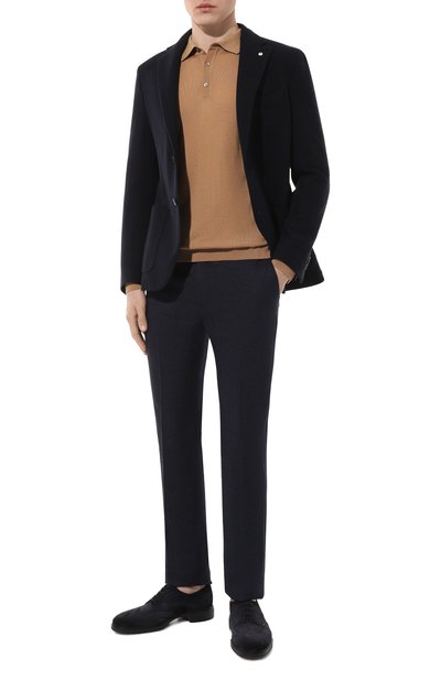 Пиджак с облегченной конструкцией без подклада выполнили из шерсти. Изделие с одним карманом внутри и тремя снаружи дополнили двумя шлицами. Модель приталенного кроя дополнит и офисный, и менее формальный образ.