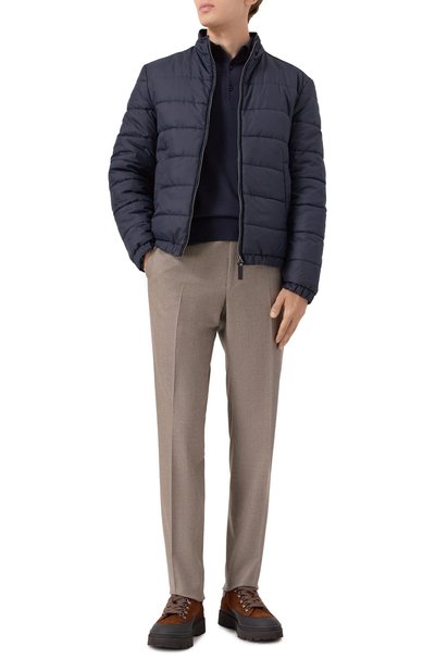 Ботинки с внутренней отделкой из пушистой овчины выполнили из бархатистой замши. Модель с усиленной шнуровкой через металлические D-образные петли установили на широкую подошву с зубчатым протектором.