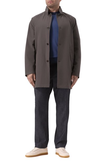 Брюки прямого кроя сшили из хлопкового вельвета с добавлением стрейчевых нитей. Самый маленький из пяти карманов модели с брендированным патчем сзади украсили вышитой маской Пульчинеллы, которой вторит съемный брелок.