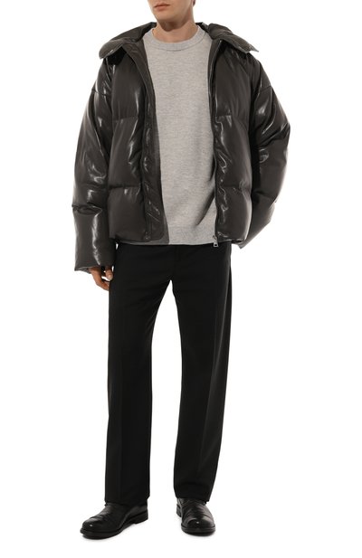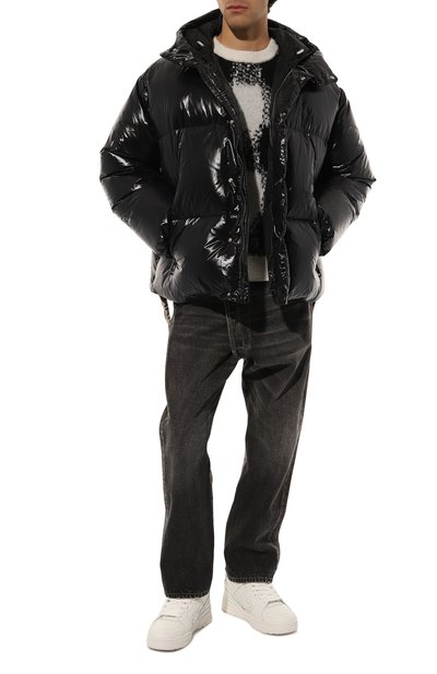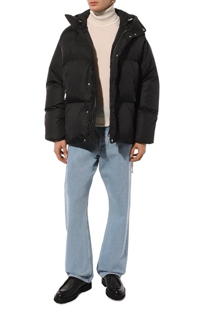 Черную объемную куртку Hide с горизонтальным стеганым узором сшили из веганской кожи Okobor™ на основе переработанного полиэстера. Утепленную модель с высоким воротником-стойкой и съемным капюшоном дополнили двумя внешними карманами с клапанами и одним прорезным внутри.