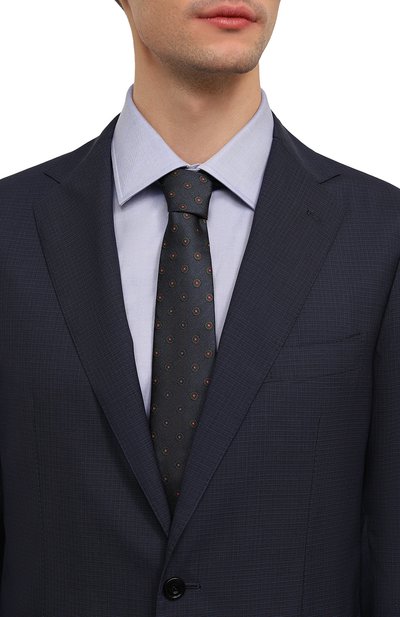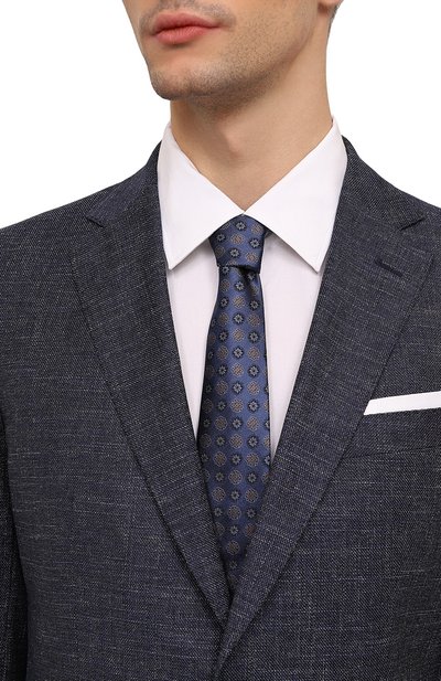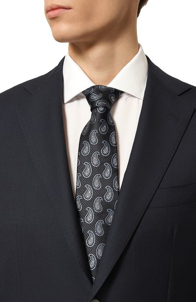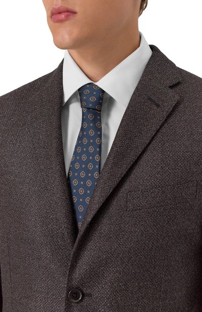 Для пошива галстука с жаккардовым фуляровым паттерном использовали плотный пластичный шелr. Выполненный вручную аксессуар почти не мнется и быстро восстанавливает форму после развязывания узла.