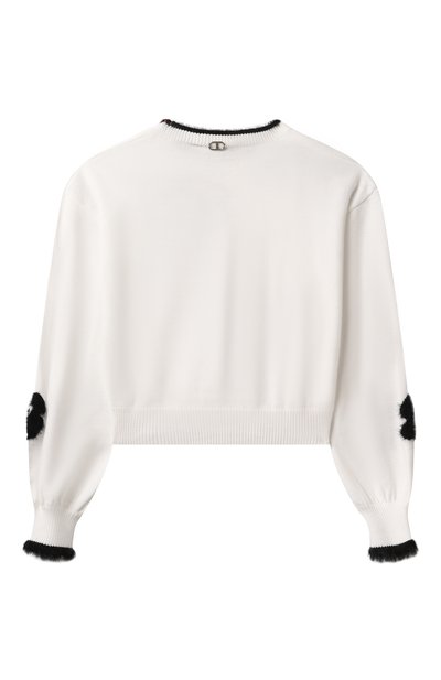 Фактурный пуловер с круглым вырезом связали из эластичной акриловой пряжи, утепленной шерстью. Лаконичную однотонную модель украсили небольшим брендированным патчем на рифленом поясе.