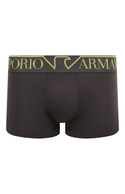 Широкий пояс облегающих боксеров подчеркнули фирменной символикой Megalogo. Трусы из капсулы Armani Sustainability Values сшиты из эластичного джерси на основе органического хлопка.