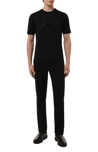 Футболку из хлопкового джерси украсили флокированным логотипом, который зарифмовали с яркими стежками сзади. Наши стилисты предлагают носить модель с джинсами, завершив неформальный образ кедами.